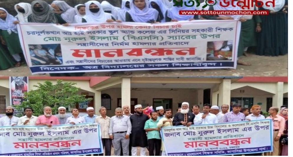 স্কুলের শিক্ষকের ওপর দুর্বৃত্তদের হামলা,ছাত্র-ছাত্রীদের প্রতিবাদে বিক্ষোভ-গ্রেফতার ১